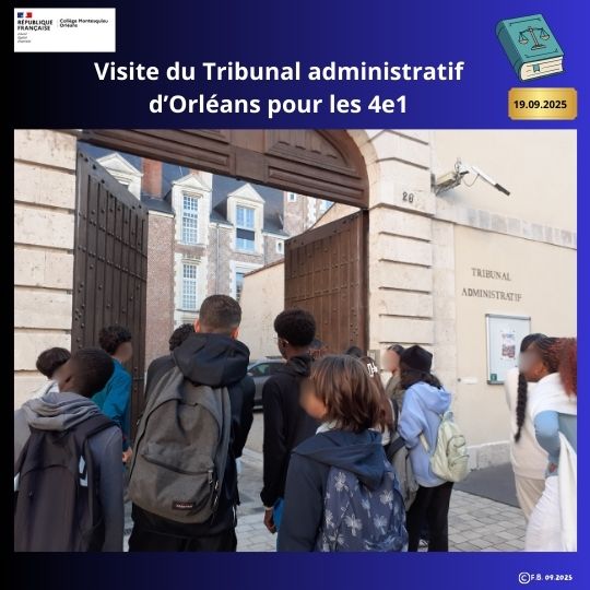 Dans le cadre des Journées européennes du Patrimoine, les élèves de 4e1 ont pu découvrir le Tribunal administratif d’Orléans qui se situe dans l’Hôtel Brachet et qui a été construit sous le règne de Louis XII (1498-1515).