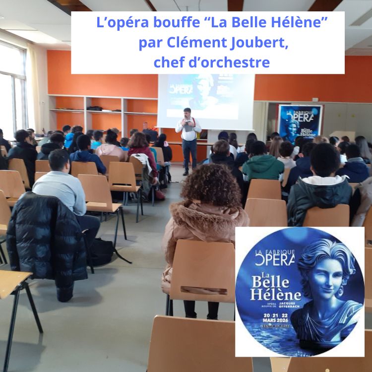 Vendredi 23 janvier 2026 Clément Joubert, chef d’orchestre à la Fabrique Opéra du Val de Loire, est venu présenter avec beaucoup d’humour l’Opéra bouffe qu’il est en train de monter avec son équipe et aussi avec de nombreux établissements scolaires.